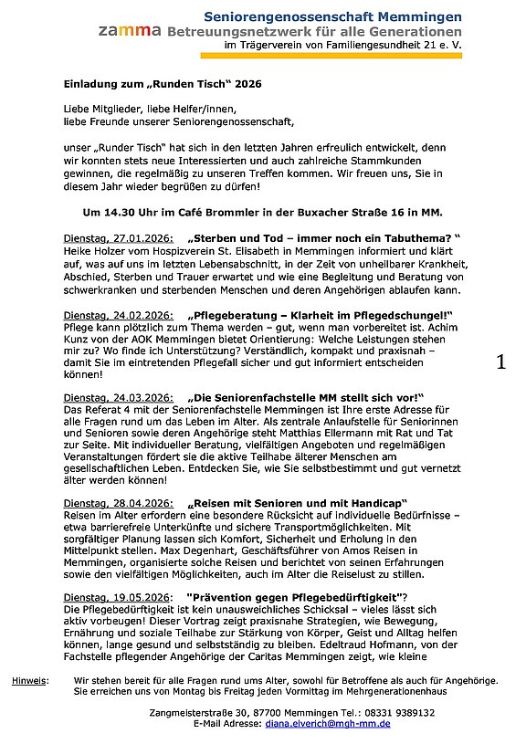 - Ort: Mehrgenerationenhaus Memmingen, Zangmeisterstr.30